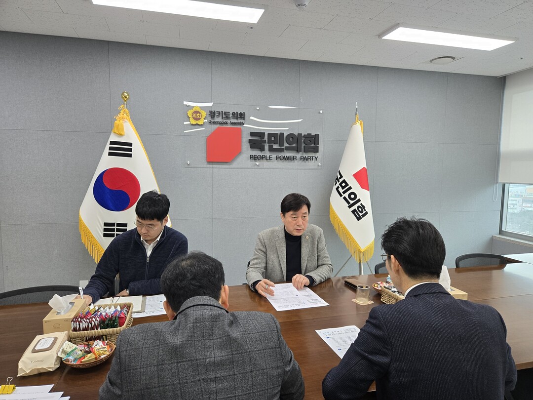 | ▲ 김영기 경기도의회 국민의힘 정책위원장이 28일 경기도 미래평생교육국 청년기회과로부터 '청년 운전면허 취득비용 지원사업' 현황을 보고 받고 있다. [경기도의회 제공] |