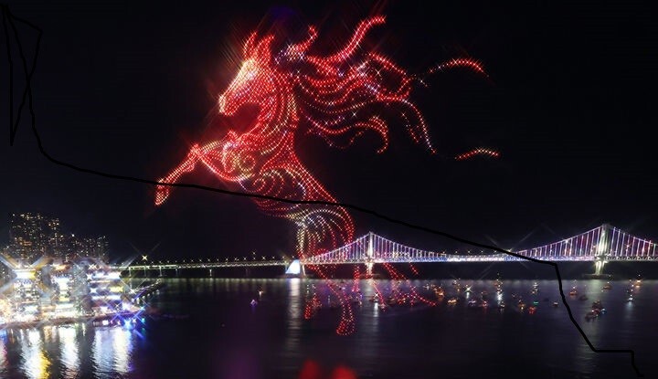 ▲ 새해 첫날인 지난 1일 새벽 부산 수영구 광안리해수욕장 일대에서 드론 2500대를 동원, 붉은 말의 해를 알리는 '2026 카운트다운 광안리 M 드론라이트쇼'가 펼쳐지고 있다. [뉴시스]