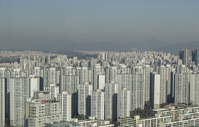 | ▲ 분양가 상한제 등 정부의 주택시장 규제가 청약통장 가입자 수를 늘렸다는 분석이다. 사진은 롯데월드 타워에서 바라본 서울 시내 아파트. [KPI뉴스 자료사진] |