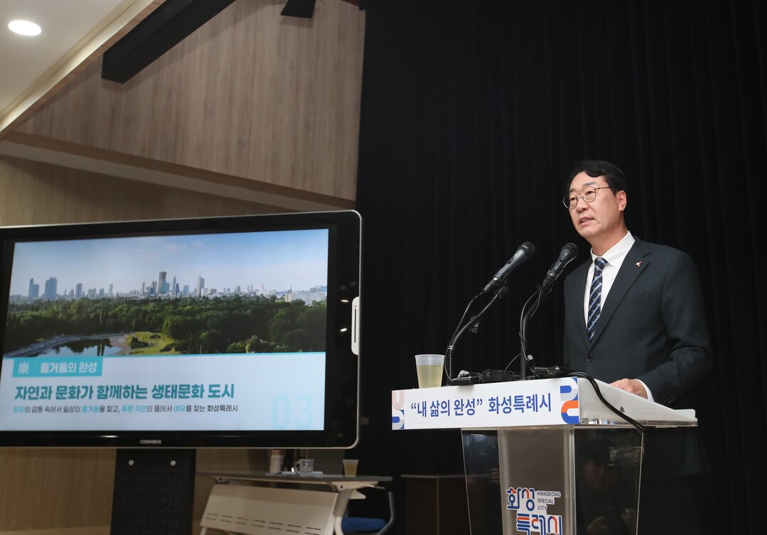 | ▲ 정명근 화성시장이 20일 '화성특례시 출범' 기자회견을 하고 있다. [화성시 제공] |
