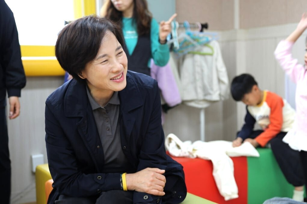 유은혜 예비후보는 21일 오후 수원시립서호지역아동센터를 방문해 방과 후 돌봄 환경과 교육복지 현장을 직접 확인하고 관계자들과 만나 현장 목소리를 청취했다.