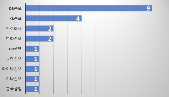 회사별로는 DB손해보험의 약진이 단연 돋보인다. 올해 들어서만 9건의 배타적사용권을 부여받아 '특허 전문 보험사'로 자리매김하는 모습이다. 이어 KB손해보험이 올해 4건을 획득해 뒤를 이었고, 다음으로 삼성화재와 한화손보가 각각 2건의 배타적사용권을 확보했다.