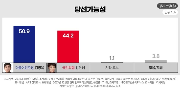 당선가능성 김병욱 50.9% 김은혜 44.2%…6.7%p 차