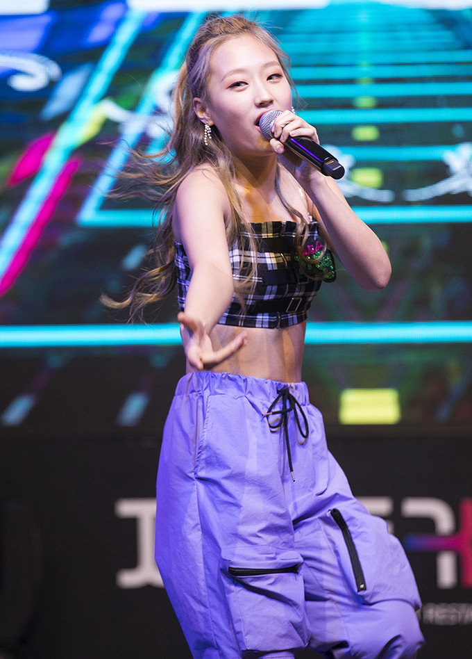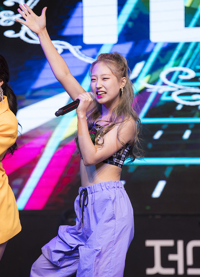 걸그룹 아이러브(ILUV) 가현이 29일 오후 서울 송파구 롯데월드타워에서 열린 미디어 쇼케이스에서 무대를 선보이고 있다.