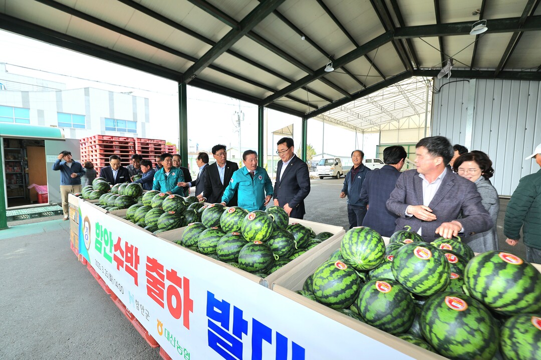 이번 발대식에는 조근제 군수, 함안군조합공동사업법인과 농협 관계자, 지역 농가와 유통 관계자 등이 참석해 올해 함안수박 첫 출하를 축하했다.