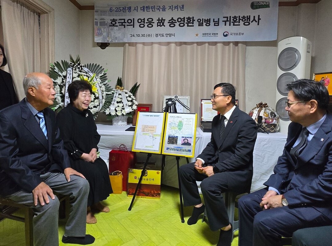 경기 안양시는 30일 10시 30분 국방부 유해발굴감식단이 고인의 유해를 유족에게 돌려주는 '호국의 영웅 귀환행사'를 안양시에 거주하는 유가족 송재숙씨의 자택에서 열었다고 밝혔다.