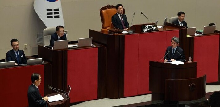 | ▲ 더불어민주당 이인영 의원(오른쪽)이 22일 국회 본회의 비경제분야 대정부 질문에서 한덕수 국무총리에게 질의하고 있다. [뉴시스] |