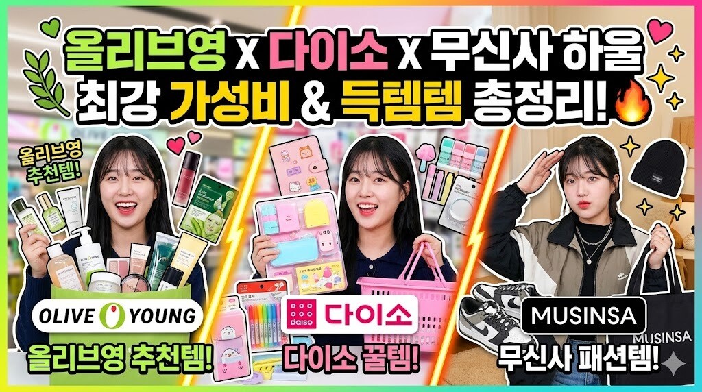 | ▲ 올리브영·다이소·무신사 대표 이미지. [제미나이 생성 이미지] |
