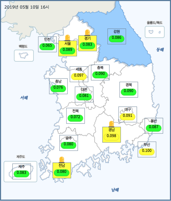 이날 경기(북부·남부·동부권), 경남(통영시,창원시 의창구·성산구), 대구, 부산(서부), 전남(순천)에도 오존주의보가 발령됐다.