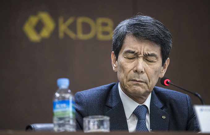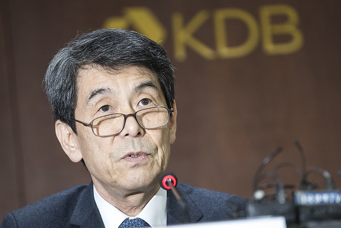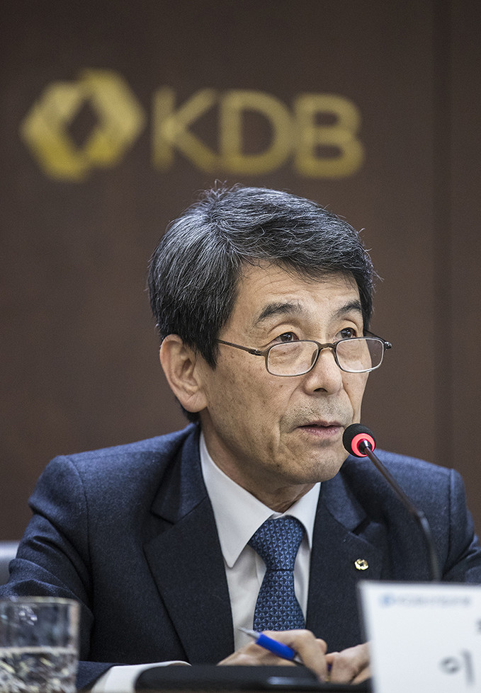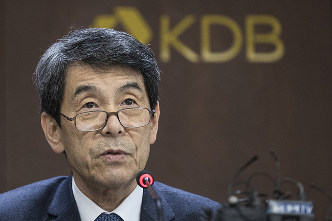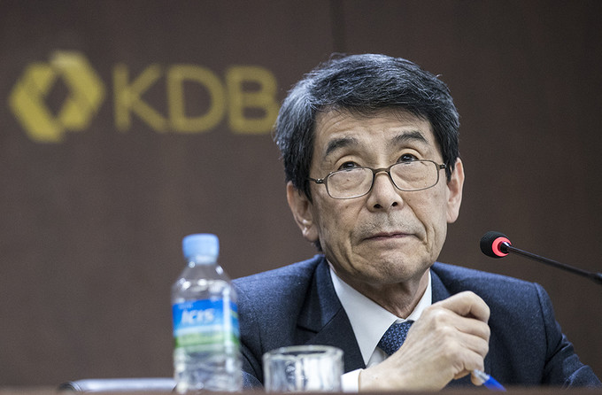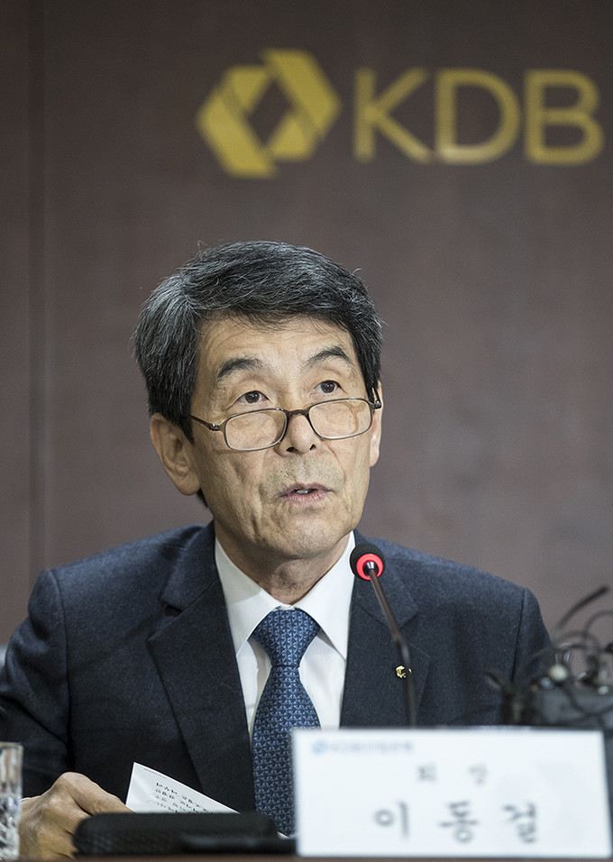 이동걸 KDB산업은행 회장이 31일 오후 서울 영등포구 여의도 산업은행에서 열린 기자간담회에서 대우조선해양의 민영화 절차와 현대중공업의 인수 제안에 대한 이사회 논의결과를 발표하고 있다. 산업은행은 대우조선해양 지분 55.7%를 보유한 최대주주다.