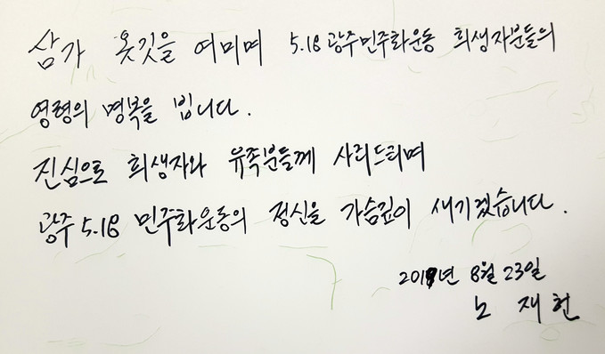 재헌 씨의 이번 5·18묘지 참배는 노 전 대통령 뜻에 따른 것으로 전해졌다.