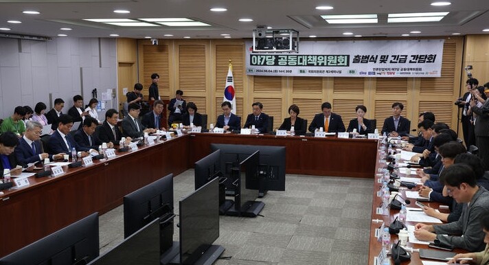 민주당과 조국혁신당, 개혁신당 등 야7당은 4일 언론탄압 저지 공동대책위를 발족했다. 야7당은 이날 공대위 출범식을 갖고 성명문을 통해 "지난 2년을 돌아보면 윤석열 정부가 전면 쇄신해야 할 분야 중 하나는 언론 분야"라며 "윤석열 정부는 비판과 견제를 허용하지 않으려는 태도로 일관했다"고 성토했다.