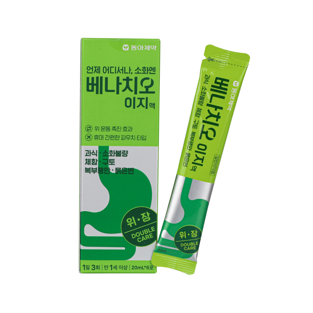 동아제약 종합 소화제 브랜드인 베나치오는 생약 성분을 함유한 무탄산 소화제다. 어린이 소화정장제 베나치오키즈액부터 베나치오액(20ml/병), 베나치오에프액(75ml/병), 베나치오 이지액까지 총 4가지 제품으로 구성하여 연령, 용량, 상황에 따라 선택적으로 복용할 수 있다.