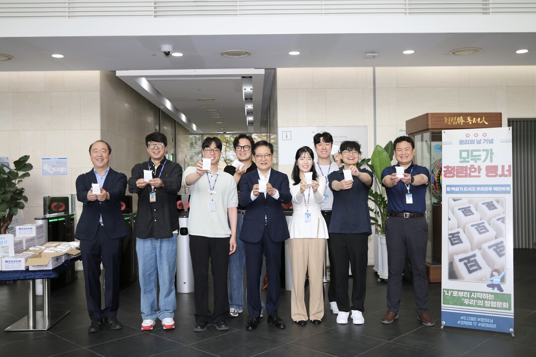 행사 당일 오전 출근길에 동서발전 경영진은 임직원 및 협력사 직원을 대상으로 깨끗함을 상징하는 순백의 '청렴 백설기'를 전달하며 청렴과 책임의 가치를 지키겠다는 윤리경영 실천의 뜻을 나눴다.