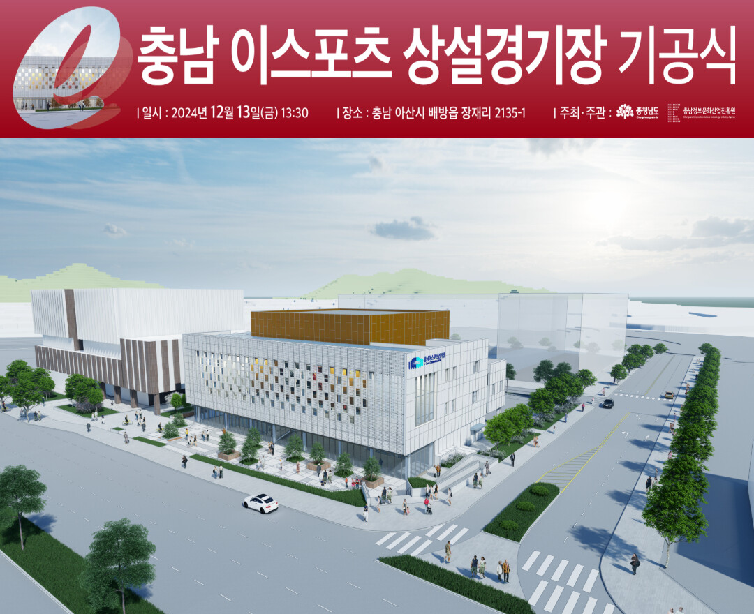 천안과 인접한 아산 배방에 건립되는 충남 이스포츠 상설경기장은 부지면적 5,400㎡, 연면적 3,849㎡에 지하 1층, 지상 3층 규모로 오는 2026년 상반기에 준공되면 이스포츠 경기뿐만 아니라 다양한 행사가 가능한 복합문화공간으로 조성된다.