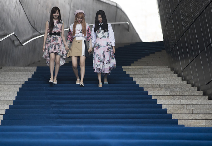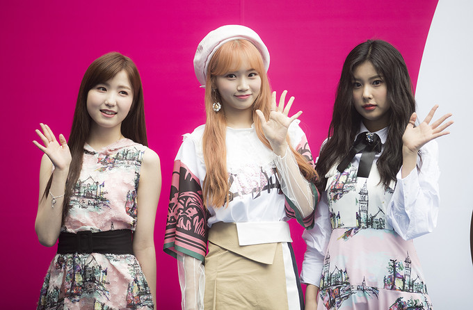 아이즈원 히토미, 김채원, 강혜원이 20일 오후 서울 중구 동대문디자인플라자(DDP)에서 열린 '2019 F/W 서울패션위크' BIG PARK(빅팍) 패션쇼에 참석해 포토타임을 가지고 있다.