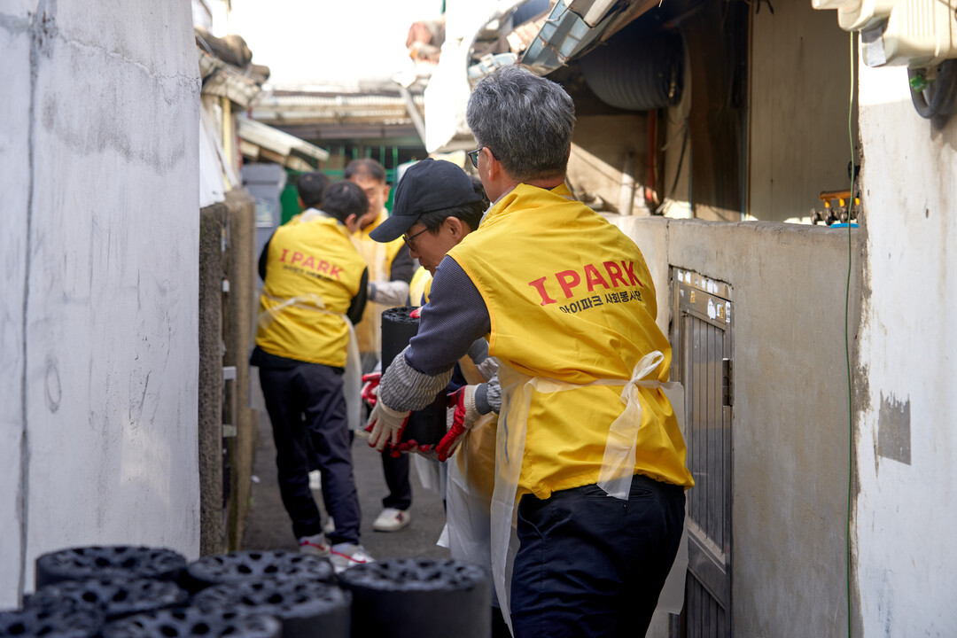 ▲ HDC현대산업개발 임직원들이 지난 11월 서울시 용산구 한강대로 일대에서 연탄 나눔 봉사활동을 진행하고 있다. [HDC현대산업개발 제공]