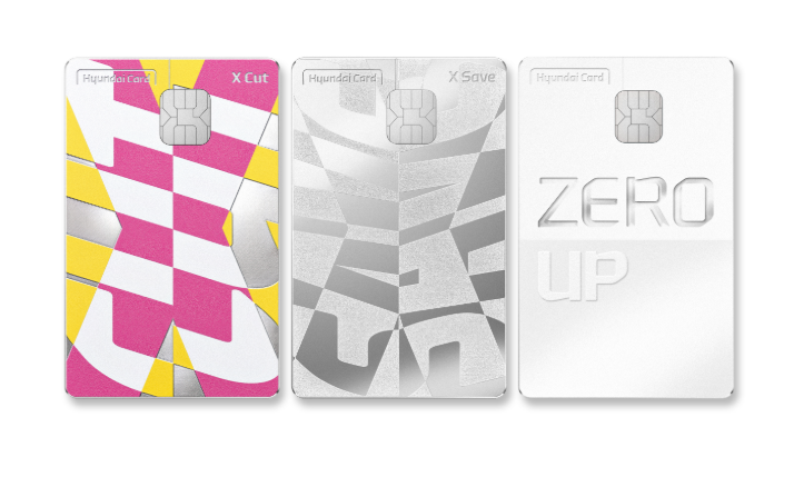 | ▲ (왼쪽부터)'현대카드 엑스 컷', '현대카드 엑스 세이브', '현대카드 제로 업' 3종. [현대카드 제공] |