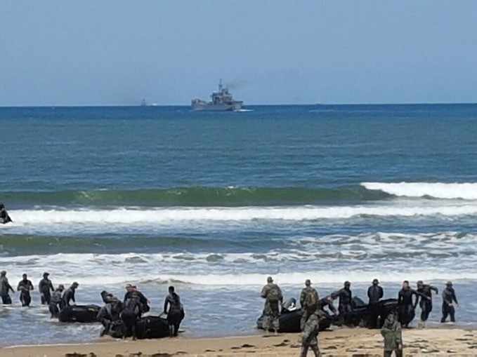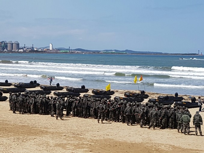 도구해안에서는 상륙돌격장갑차(KAAV) 18대·상륙용 고무보트(IBS) 24척이 참여하는 상륙작전 시연이 펼쳐졌다.
