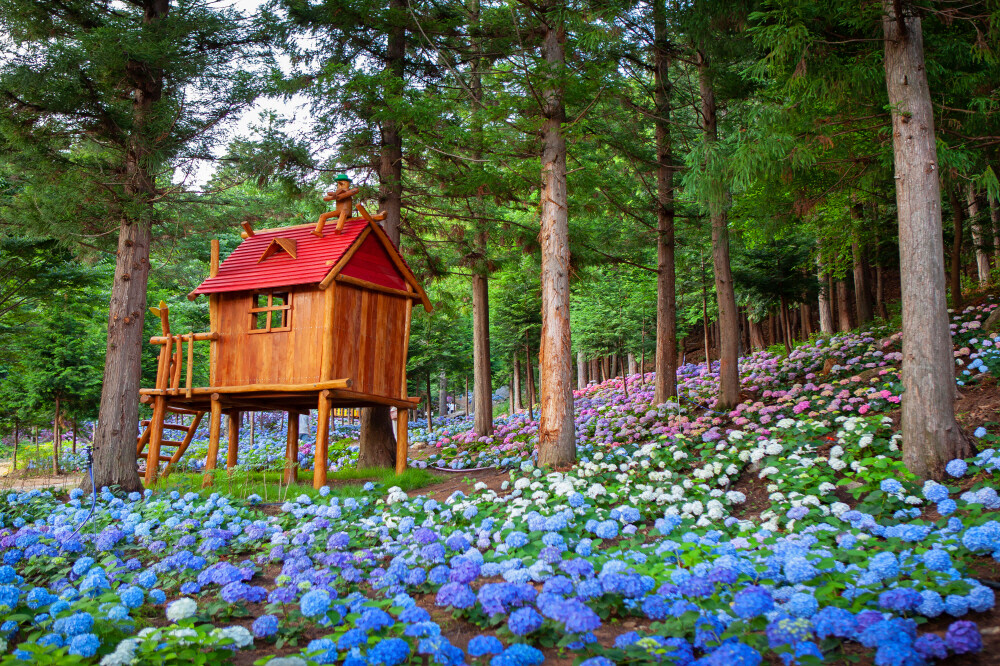 보성 윤제림은 1964년부터 가꿔온 민간 정원으로, 약 33만㎡에 달하는 면적에 피톤치드를 내뿜는 소나무와 편백나무 6만 그루가 자라고 있다. 6월 중순이면 수국 4만 그루가 만개해 알록달록한 풍경 속에서 '인생샷'을 남길 수 있다. 야영장과 숙박시설 등 다양한 휴양 인프라도 갖췄다.