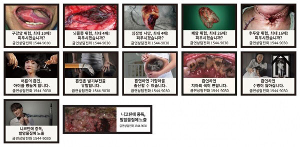 기존 권련류 10종과 전자담배용 1종 등 11종 그림을 모두 새로운 그림으로 교체된다. 효과성이 낮게 평가된 '피부노화' 대신 '치아변색'이 경고그림 중 하나로 추가된다.