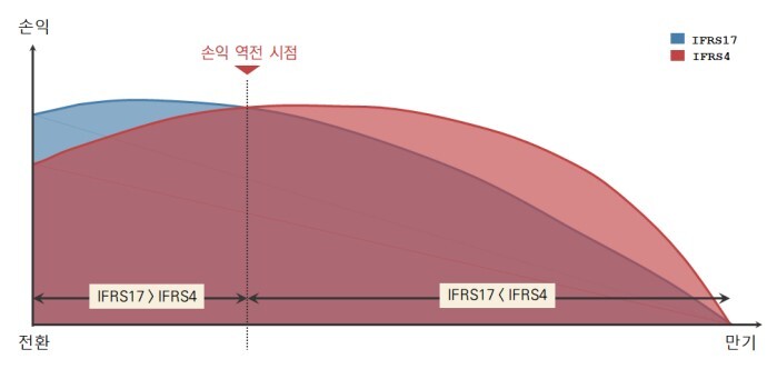문제는 이 같은 현상이 나중에는 보험업계에 '부메랑'으로 되돌아올 수 있다는 점이다. 보험계약마진(CSM)은 어디까지나 회계적으로 인식되는 보험수익이다. 보험사의 실제 현금유입과는 다른 개념이다. IFRS17에서는 신계약 초기의 손익이 종전 회계기준(IFRS4)보다 커지는 '초기효과'가 생긴다. 반대로 일정 기간 이후에는 손익이 뚝 떨어질 수 있다.