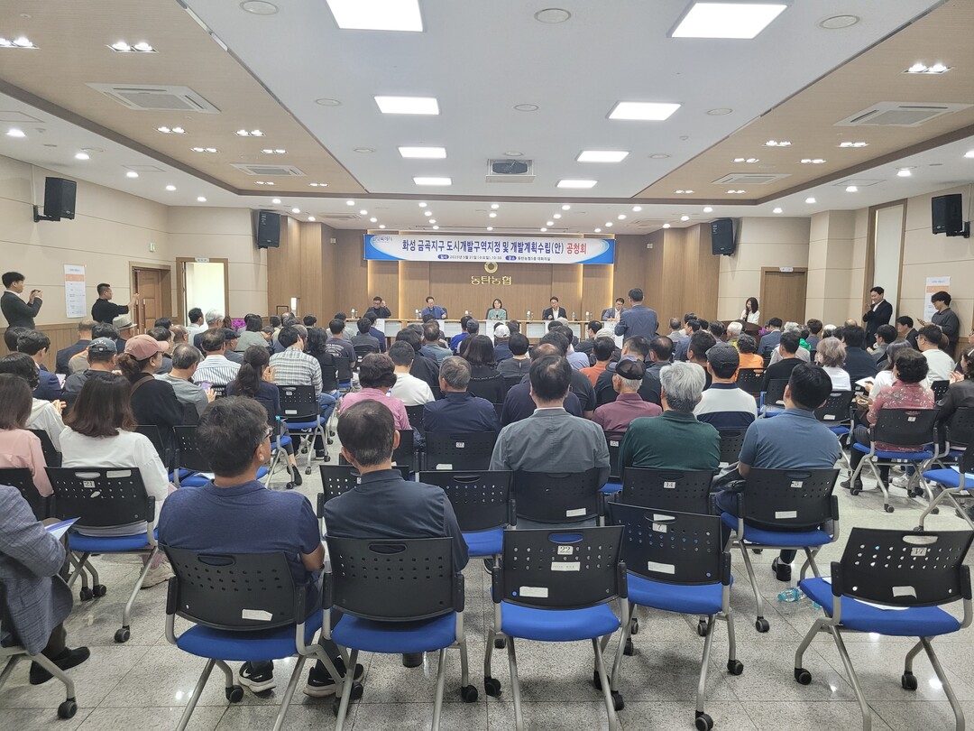 ▲ 지난 21일 열린 화성시 금곡지구 도시개발구역지정 및 개발계획 수립 공청회 모습.  [화성시 제공]