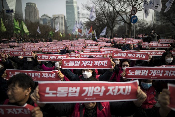 민주노총은 이날 여의도 국회 앞을 포함한 전국 13곳에서 총파업 집회를 열었다. 집회에 참여한 인원도 대부분 노조 전임자를 비롯한 간부와 연가를 낸 조합원 등인 것으로 전해졌다.