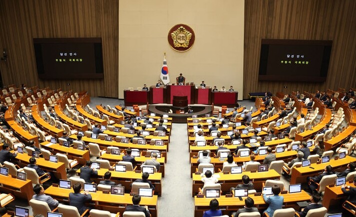 국회는 5일 첫 본회의를 열었으나 더불어민주당을 비롯한 야당이 단독으로 소집해 개의한 것이었다. 집권 여당인 국민의힘은 반발해 불참했다. 야당만 참석해 국회가 개원한 건 헌정 사상 처음이다.