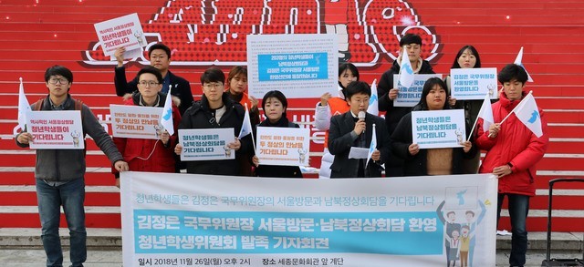 일부 청년단체들이 모여 김정은 북한 국무위원장의 서울 방문과 남북정상회담을 환영하는 연합체를 출범했다.