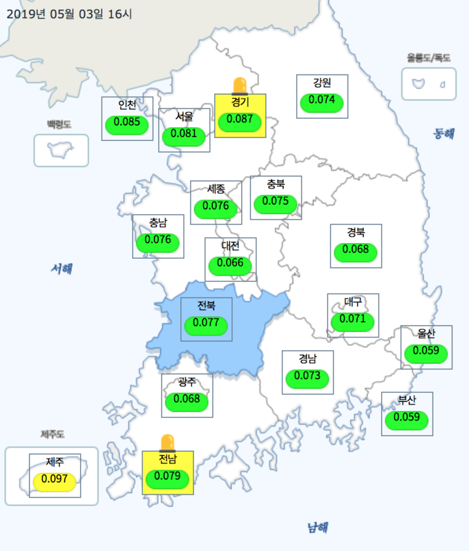 3일 경기지역과 전라남도 순천에서 올해 첫 오존주의보가 발령됐다.