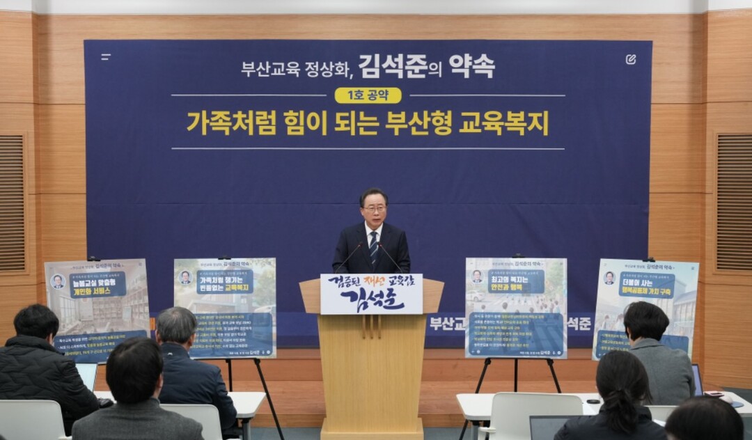 김석준 부산시교육감 예비후보는 26일 시의회 브리핑룸에서 기자회견을 통해 '부산형 교육복지' 정책을 발표하며 첫 정책 행보를 시작했다.