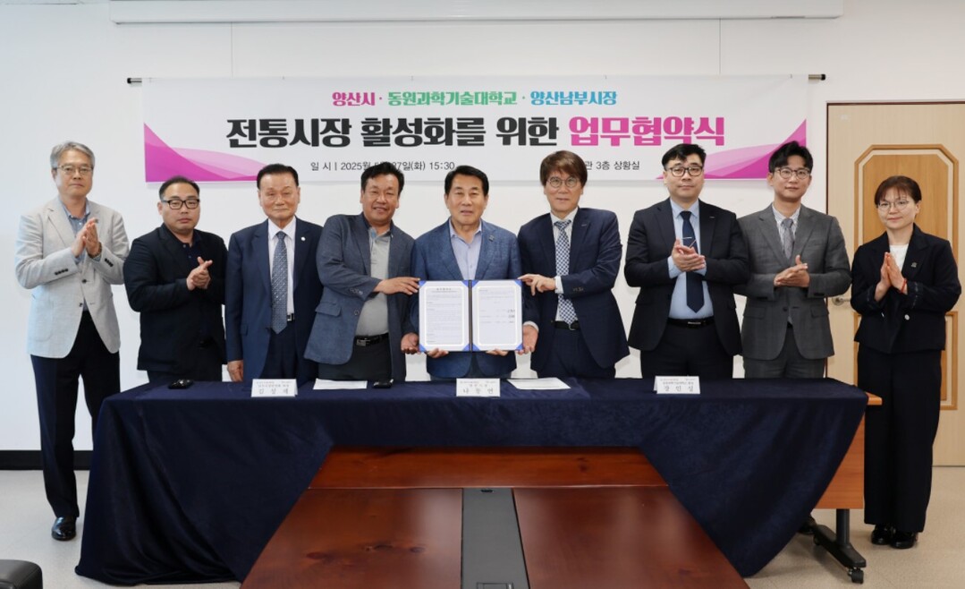 경남 양산시는 27일 시청에서 동원과학기술대학교, 남부시장번영회와 함께 전통시장 활성화를 위한 업무협약(MOU)을 체결했다.