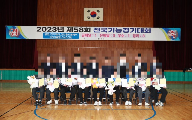 | ▲ 전남 여수고교 학생들이 지난 2023년 전국기능경기대회에서 '산업용 드론제어' 은메달과 동메달을 수상한 뒤 기념촬영을 하고 있다. [여수 A고교 홈페이지 갈무리] |