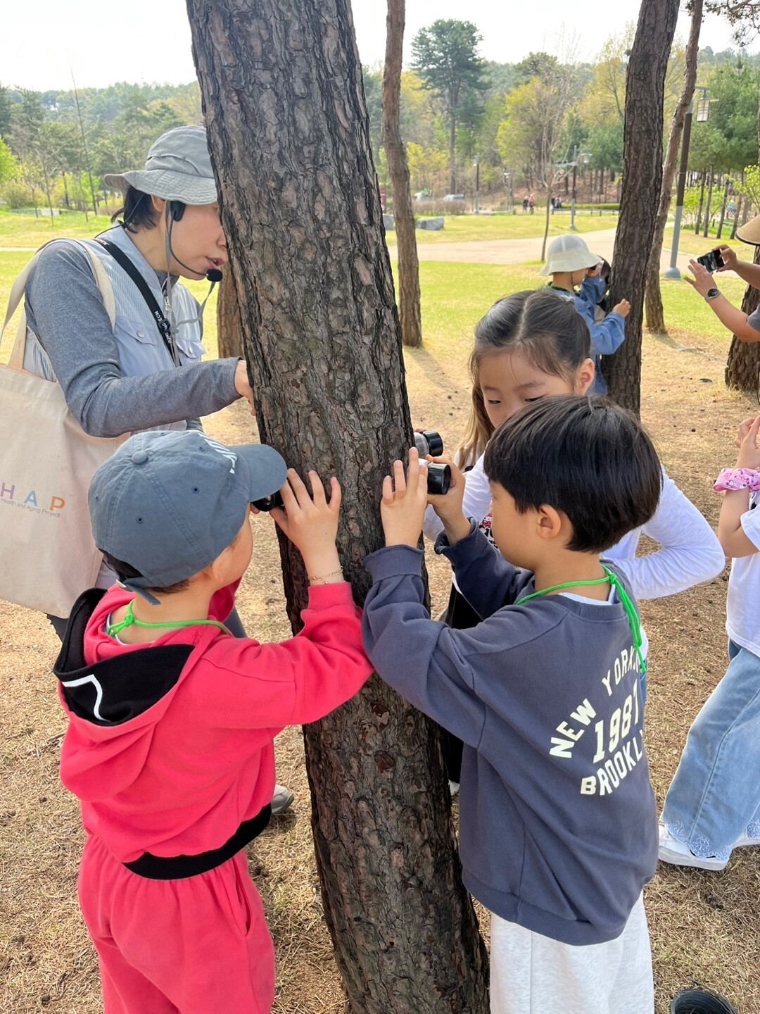 KPI뉴스 - [포토] 유치원생들의 나무 껍질 관찰