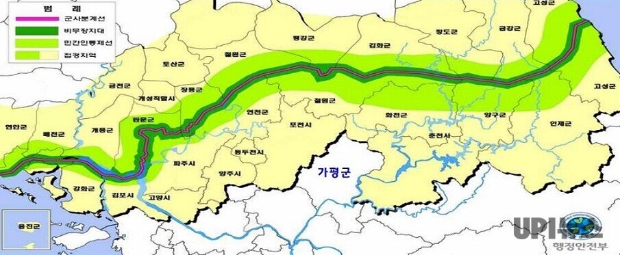 가평군은 민통선 이남 25㎞ 이내에 속하고군사시설보호구역(28.1㎢)과 미군공여구역(가평읍·북면·조종면)이 있고, 개발정도 지표 5개 중 3개 이상이 전국 평균지표보다 낮아 접경지역 요건을 충분히 갖추고 있다.