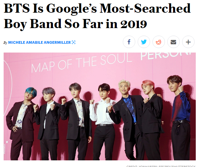 "Topping the list? K-Pop kings BTS. Their latest album, "Map of the Soul: Persona" is already among the year's biggest movers. On YouTube, their song 'Boy With Luv' racked up over 78 million views within 24 hours of release" (2019. 4. 30. Variety)