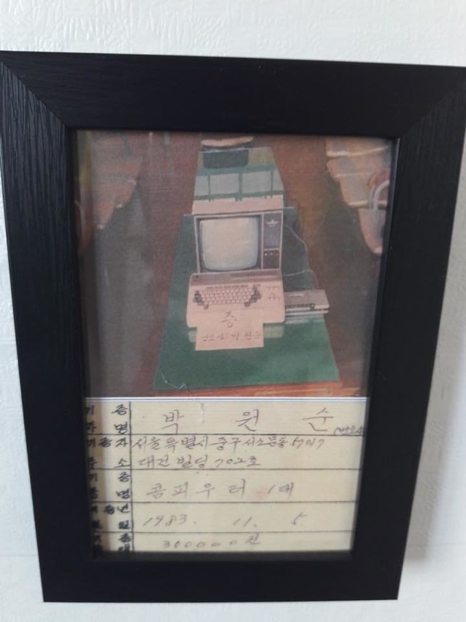 사진에는 박 시장이 1983년 은사님의 부탁으로 학교에 기증했다는 컴퓨터와 이에 대한 설명이 담겨있다.