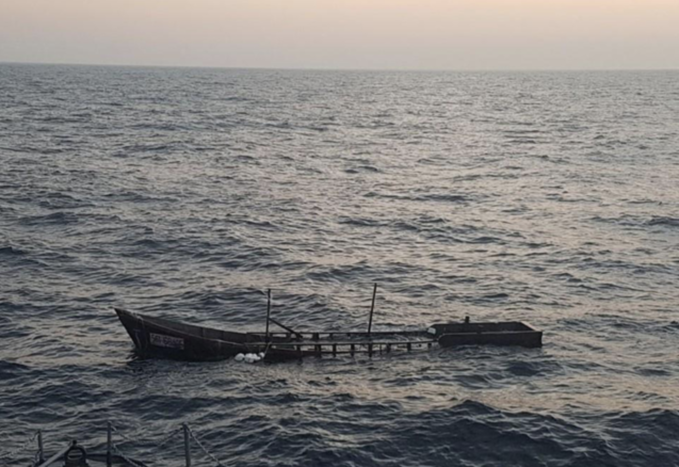 이 선박은 오전 2시 18분께 NLL을 넘어왔고, 해군 고속정 2척이 출동해 확인한 결과 이 무인 선박은 발견 당시 70% 정도 물에 잠겨 있었다.
