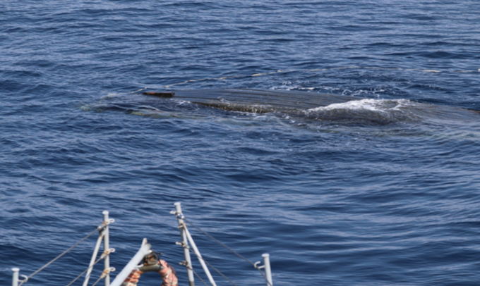 ▲ 지난 13일 오후 1시 27분께 해군 P-3 해상초계기가 울릉도 북방에서 초계하다 울릉도 북방 64㎞, NLL 남방 55㎞ 지점에서 뒤집힌 채 떠 있는 북한의 무인 목선 1척이 발견됐다. [합동참모본부 제공]