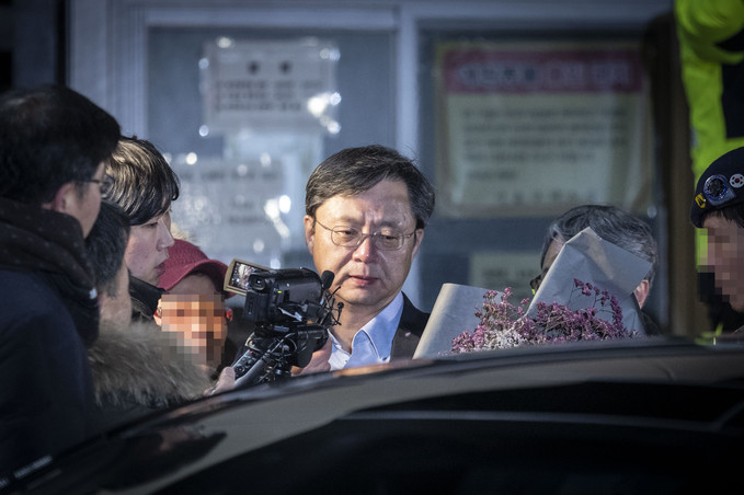 ▲ 우병우 전 청와대 민정수석이 지난 1월 3일 경기 의왕시 서울구치소에서 구속기한 만료로 384일 만에 석방되고 있다. [문재원 기자]