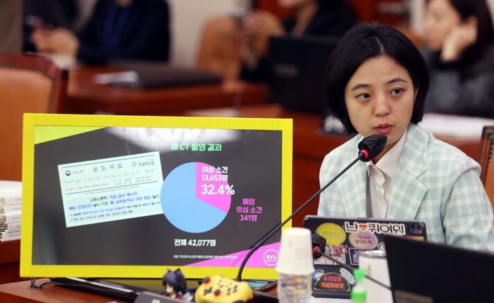 | ▲ 정의당 류호정 의원이 지난달 24일 대한체육회 등에 대한 국회 문화체육관광위의 국정감사에서 질의하고 있다. [뉴시스] |