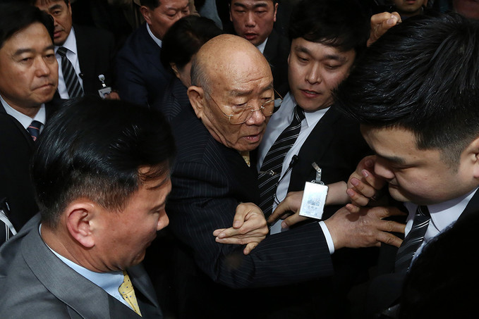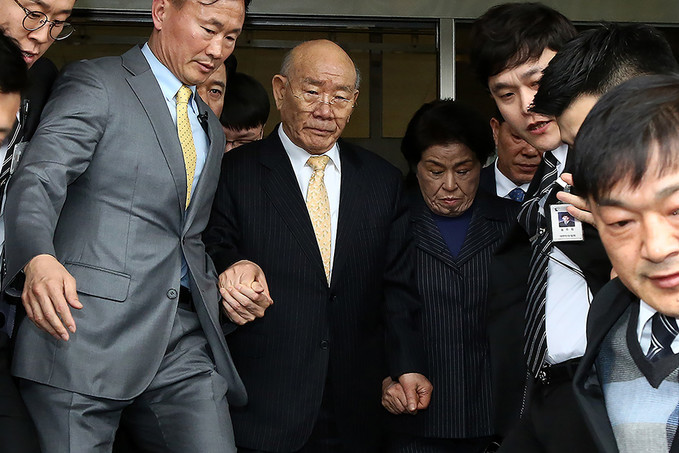 ▲ 고 조비오 신부 사자명예훼손 혐의를 받고 있는 전두환 전 대통령이 이순자 여사와 함께 11일 오후 광주지방법원에서 열린 재판을 마친 뒤 귀가하고 있다. [광주=정병혁 기자]