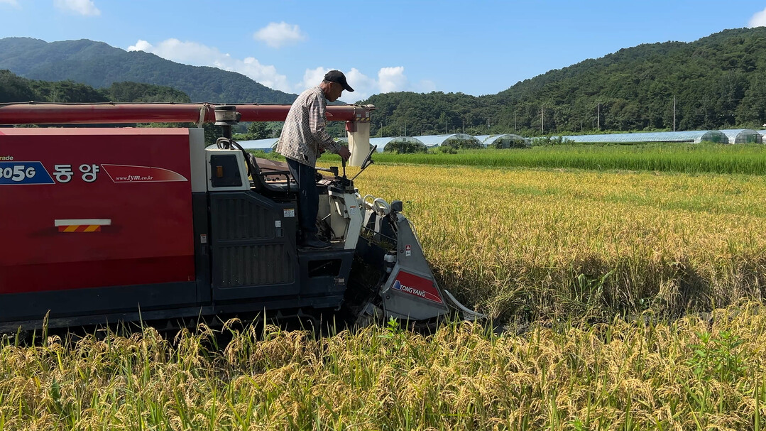 KPI뉴스 - [포토] 폭염·수해 견뎌낸 황금빛 결실…전남 담양군 올해 첫 벼 수확