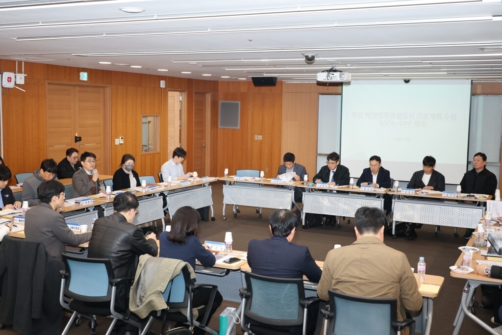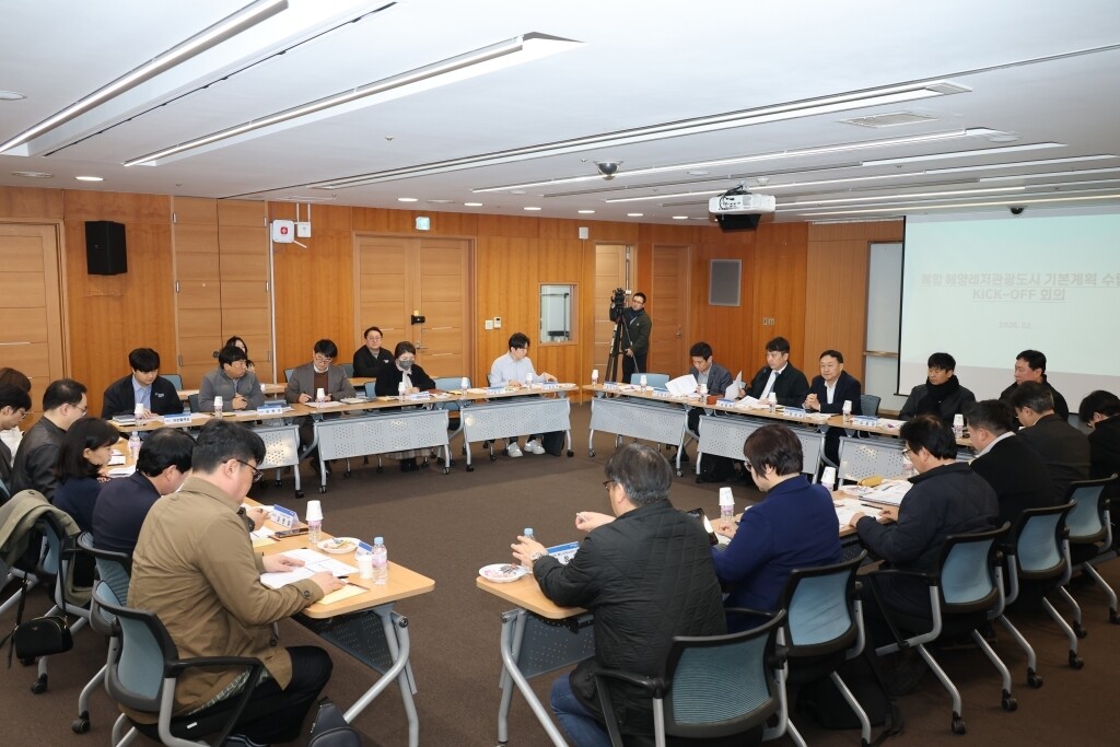포항시는 26일 시청에서 '복합 해양레저관광도시 조성사업 기본계획 킥오프 회의'를 개최했다. 이날 회의에는 경북도와 포항시를 비롯해 포항테크노파크, 특급호텔 등 민간투자사, 지역 전문가 및 관광 관련 단체·기업인들이 참석했다.
