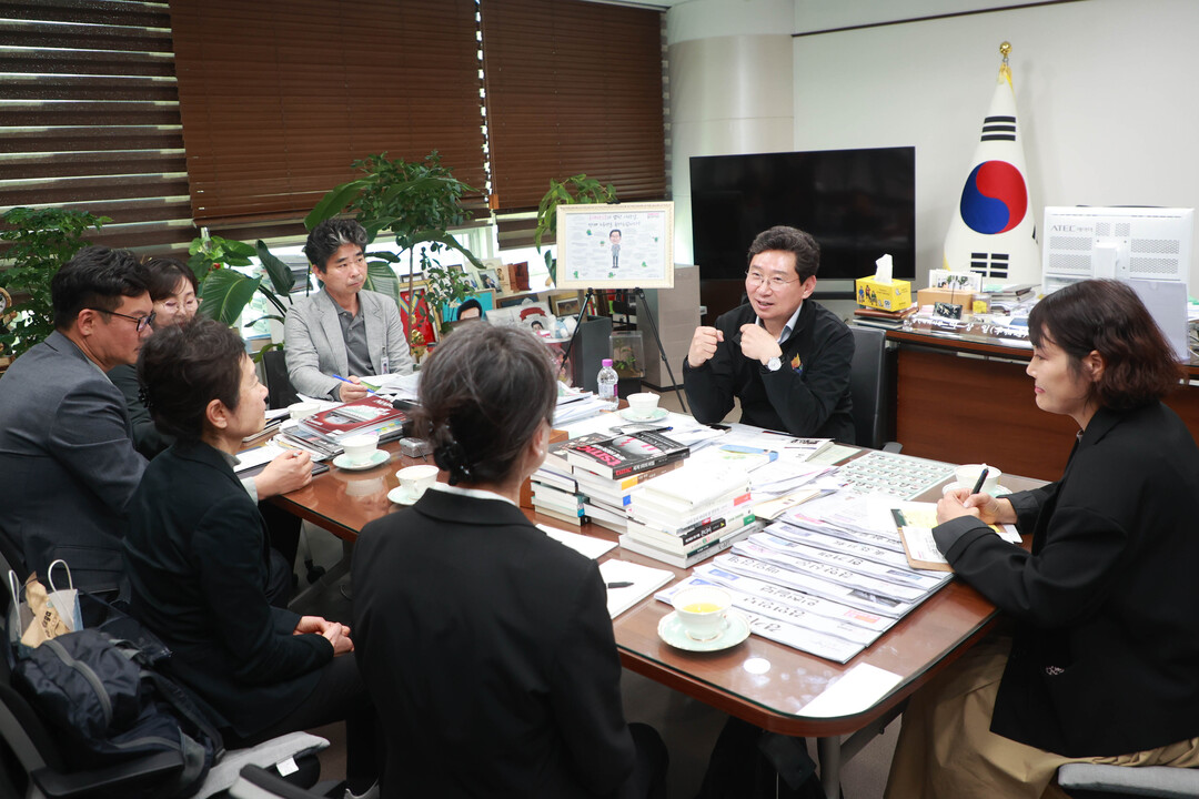| ▲ 이상일 용인시장이 지난달 30일 용인시청에서 미국 윌리엄슨 카운티 경제개발청 관계자들과 대화하고 있다. [용인시 제공] |