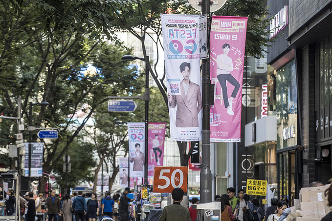 2018 코리아세일페스타 개막을 하루 앞둔 27일 오후 서울 중구 명동에 행사를 알리는 현수막이 붙어있다. 한국판 블랙프라이데이 ‘코리아 세일 페스타(Korea Sale FESTA) 2018’은 28일부터 10월 7일까지 열흘간 펼쳐지며 주요 백화점과 대형마트, 온라인쇼핑몰, 유명 온·오프라인의 유통 제조 서비스사들이 참여해 대규모 할인 행사를 진행한다.