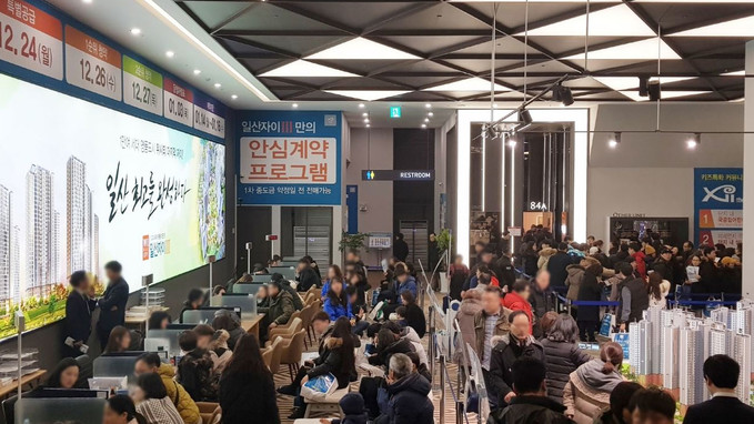 ▲ 지난 14일 경기도 고양시 일산동구에 문을 연 일산자이3차 견본주택 상담석이 청약 상담을 받으려는 고객들로 붐비고 있다. [GS건설 제공]