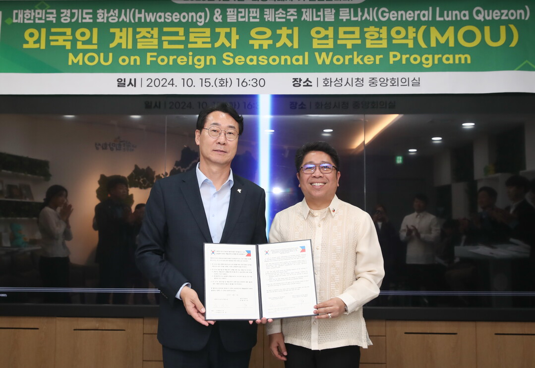 경기 화성시가 부족한 농촌 일손 부족 문제 해결을 위해 필리핀 퀘손주(Quezon) 제너럴 루나시(General Luna)와 손을 잡았다.