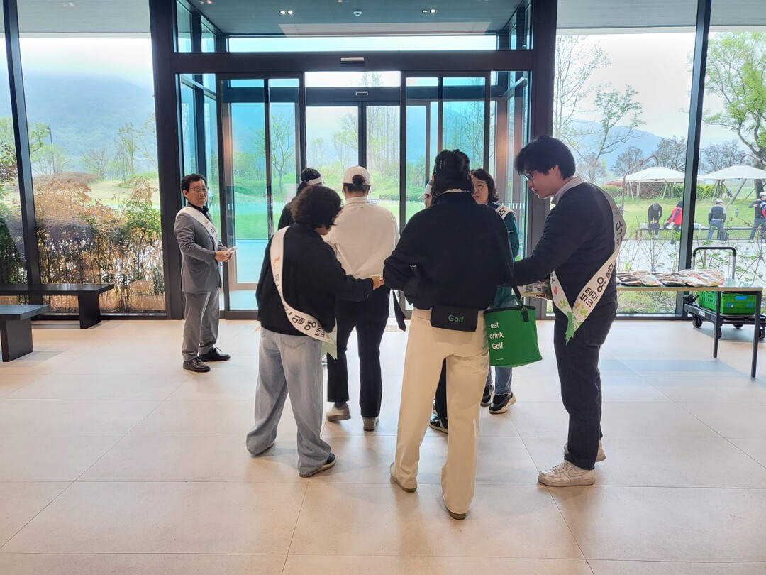 | ▲ 24일 밀양물산이 에스파크 골프장에서 파머스마켓 홍보 행사를 하고 있다. [밀양시 제공] |